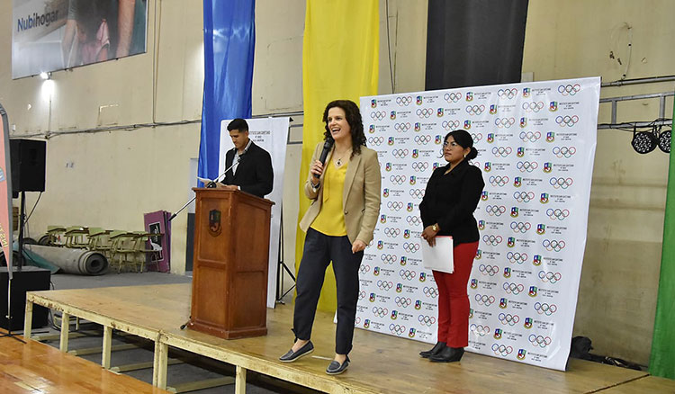 El acto Inaugural de las 25° Olimpiadas por la Paz se realizó en el Polideportivo Delmi y estuvo encabezado por la Rectora del Instituto San Cayetano N° 8092, Mg. Dora Matana y la titular de la cartera educativa provincial, ministra Cristina Fiore Viñuales.