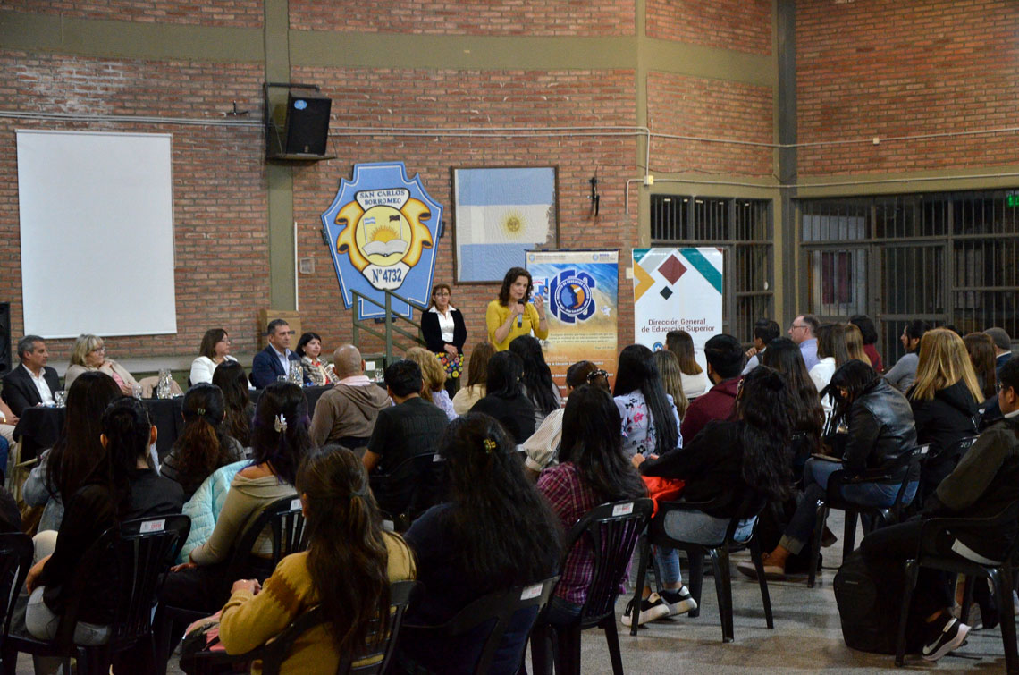 En el acto de lanzamiento la titular de la cartera educativa Cristina Fiore Viñuales se dirigió a los estudiantes del Instituto de Educación Superior Nº 6043 Jorge Luis Borges; “En estos tiempos difíciles, dónde la institución escuela es golpeada a diario por la realidad, van a hacer algo importantísimo. Ser referente de sus alumnos y alumnas, cada uno de nosotros guarda en su corazón algún docente con cariño, ustedes van a tener la posibilidad de elegir la clase de referente que van a ser para ellos"