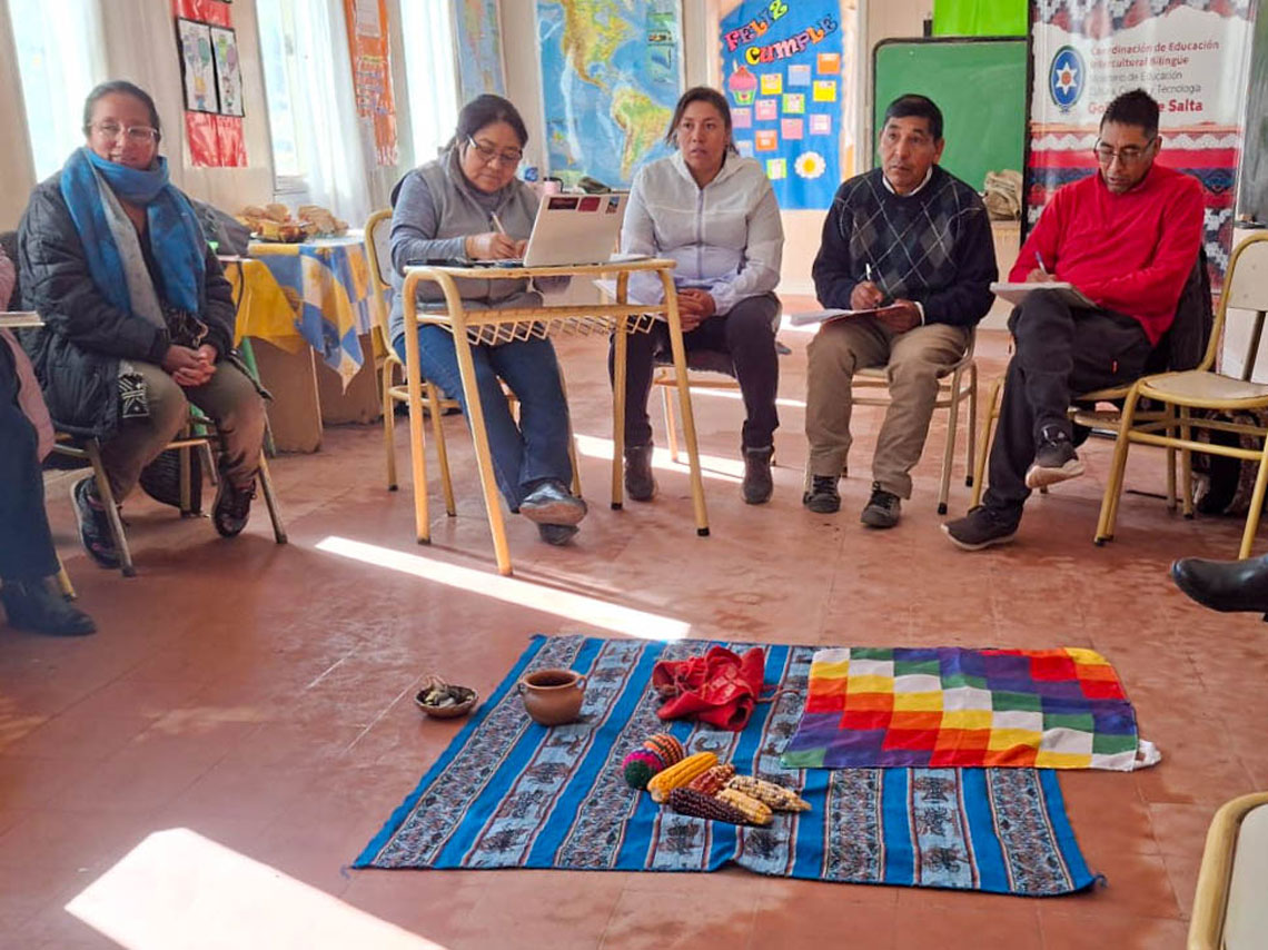 La Jornada interinstitucional “Fortaleciendo la Educación Intercultural Bilingüe en territorio del pueblo diaguita-calchaquí” se realizó en la Escuela de Educación Primaria N° 4.181 de Río Grande, en el departamento de San Carlos. Participaron docentes de los niveles de Educación Inicial y Educación Primaria, equipos de gestión escolar y referentes indígenas.