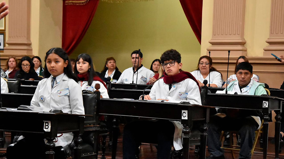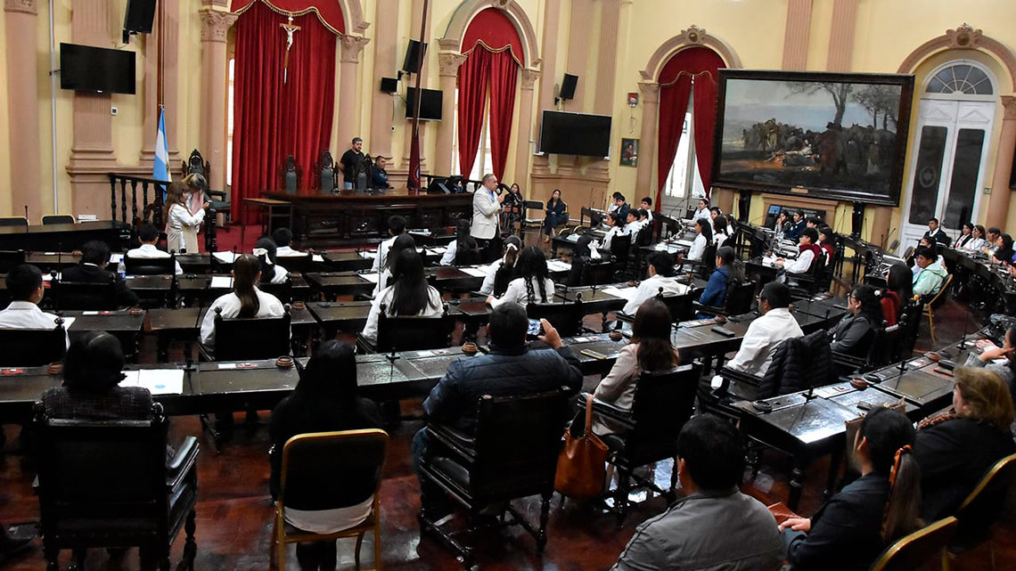 En el Recinto de Sesiones de la Legislatura provincial, los estudiantes pusieron en debate tres leyes sobre cuidado de la salud, medio ambiente y convivencia escolar, temáticas transversales a las que realizan en el aula con la guía de sus docentes. Saldaña agregó que esta actividad también sirve como nexo articulador y preparatorio con el Nivel Secundario.