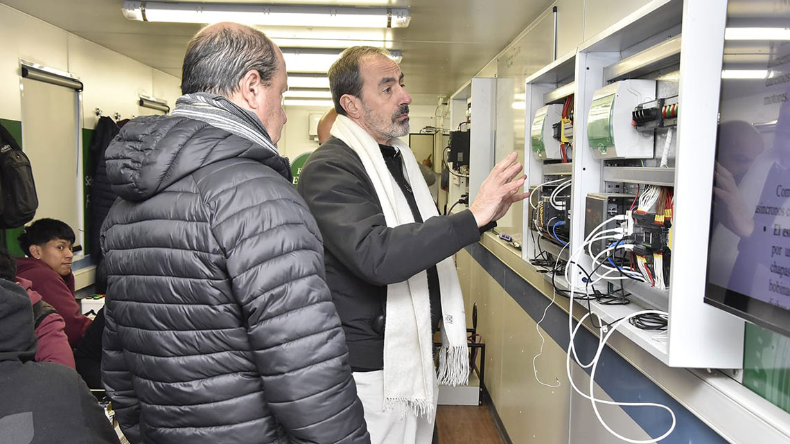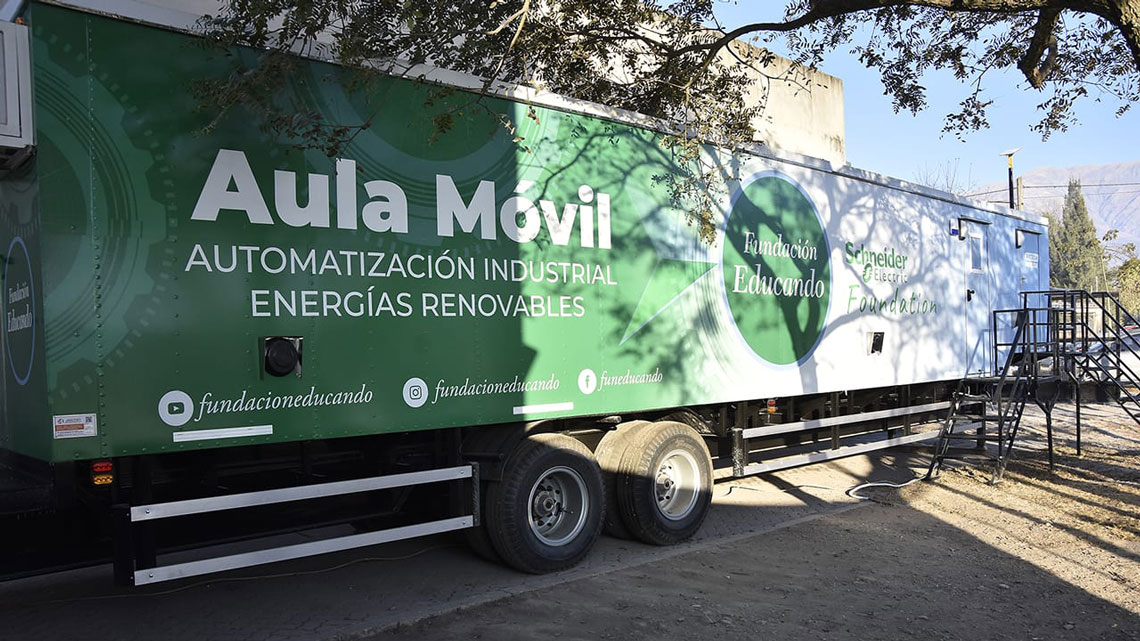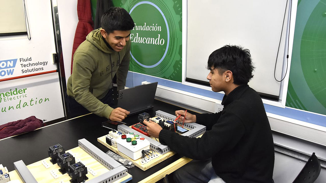 La Fundación Educando, junto a la empresa Schneider Electric y el Ministerio de Educación articulan capacitaciones a docentes y estudiantes en electromecánica y electrónica. El Aula Móvil, en otra instancia, se trasladará a escuelas técnicas del resto de la provincia con esta especialización.