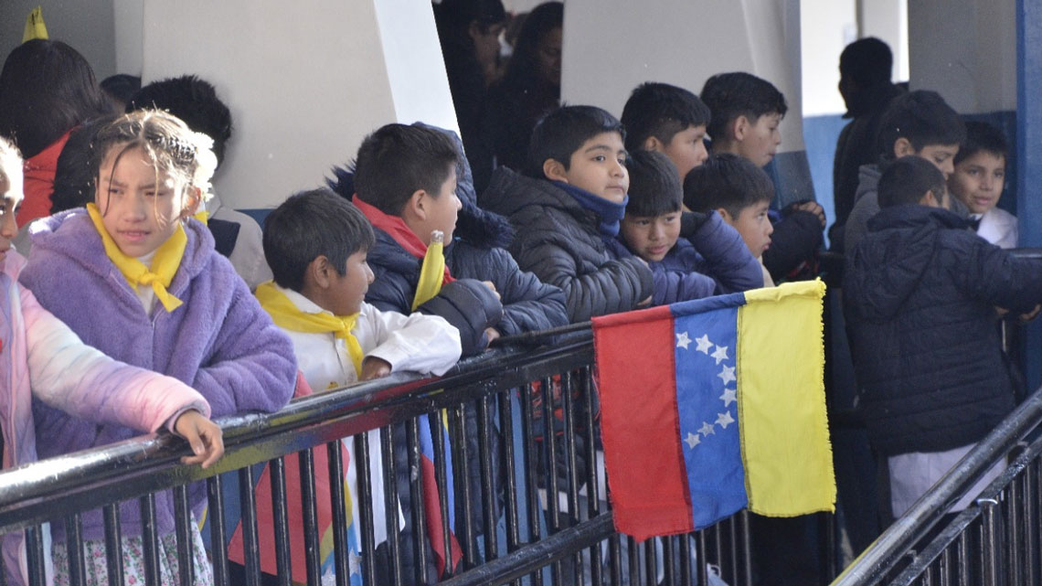 En la Esc. N° 4078 “Dr. Bernabé López” de la localidad de Vaqueros se realizó el acto por el 5 de Julio día de la Independencia de Venezuela, en el cual los alumnos de primero a séptimo grado participaron con números alusivos, danzas y afiches sobre Venezuela que trabajaron en clase decorando la institución.