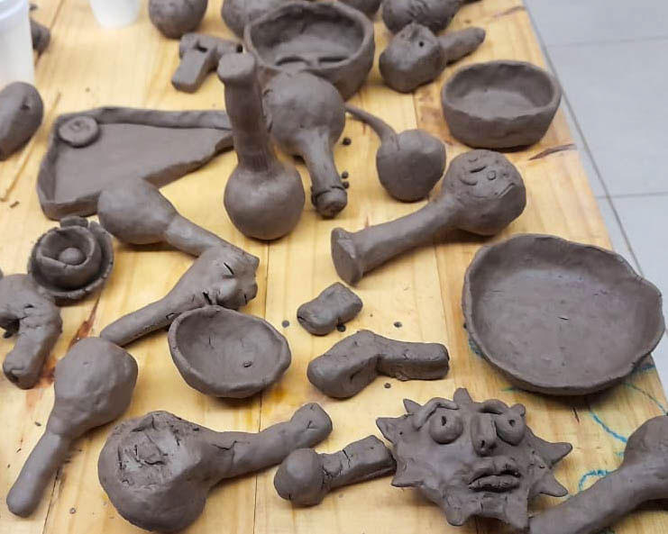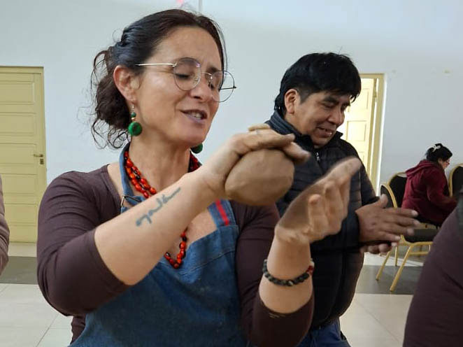 Durante la tarde, Julieta Barboza presentó experiencias de uso del material cerámico en juegos de mesa de origen andino y Cristian Puca compartió su trabajo sobre la cerámica y su uso en la producción de distintos objetos, como los silbatos escultóricos. Luego, se desarrolló un taller sobre diseño precolombino, coordinado por Silvia Martínez, que permitió la experimentación directa con técnicas de creación cerámica. Finalmente, Julieta Barboza y Adelaida Jerez guiaron un espacio de reflexión y construcción colectiva orientado al diseño de propuestas pedagógicas interculturales y comunitarias con eje en la cerámica de la región.