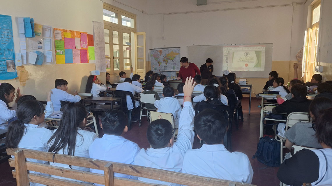 La primera actividad se realizó en la institución, donde docentes de la Subsecretaría, junto con especialistas de Parques Nacionales, ofrecieron una charla a los estudiantes sobre la investigación escolar que van a realizar, resaltando el papel fundamental de los árboles en la preservación de la vida en el planeta.