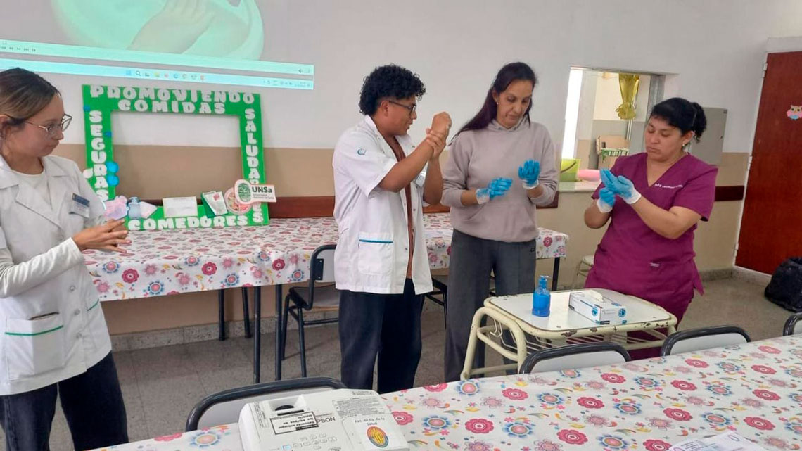 El Proyecto de extensión universitaria con participación estudiantil, denominado “Promoviendo comidas seguras y saludables en comedores escolares de la Provincia de Salta”, se realiza en articulación con la Cátedra de Administración en Servicios de Alimentación de la Carrera de Nutrición, tiene como propósito brindar herramientas necesarias que permiten conservar la Inocuidad de los alimentos durante el proceso de elaboración de las comidas en las escuelas.