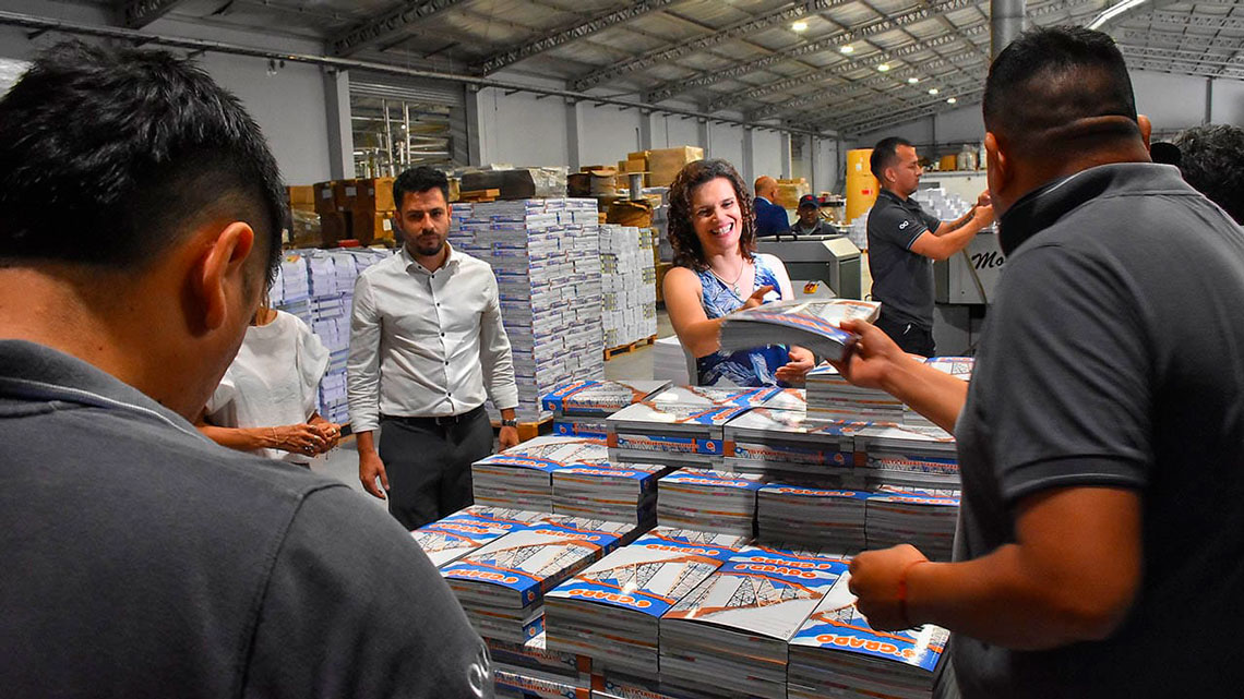 De esta manera se garantiza que cada estudiante de primero a séptimo grado cuente con estas herramientas de aprendizaje. La ministra de Educación y Cultura Cristina Fiore Viñuales recorrió la planta de la empresa Cartoon, en el Parque Industrial de Salta, donde fue recibida por el jefe de Producción, Jorge Romano.