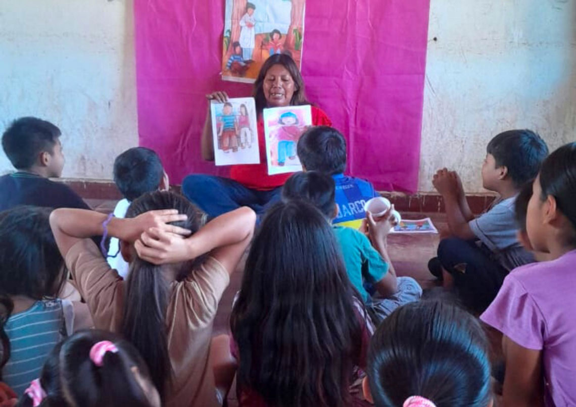 La propuesta estuvo a cargo de docentes bilingües del pueblo guaraní y se realizó con el objetivo de fortalecer la alfabetización intercultural, en consonancia a lo trabajado el año pasado con los relatos del libro “Las aventuras de Ernestina, Huacajñe y Pablo”. Este material fue entregado en el marco del programa Alfabetización temprana, inicial y familiar con perspectiva intercultural, implementado durante 2025 por el Ministerio de Educación y Cultura en articulación con UNICEF, con el objetivo de fortalecer la mejora de aprendizajes de los niños y niñas de comunidades indígenas.