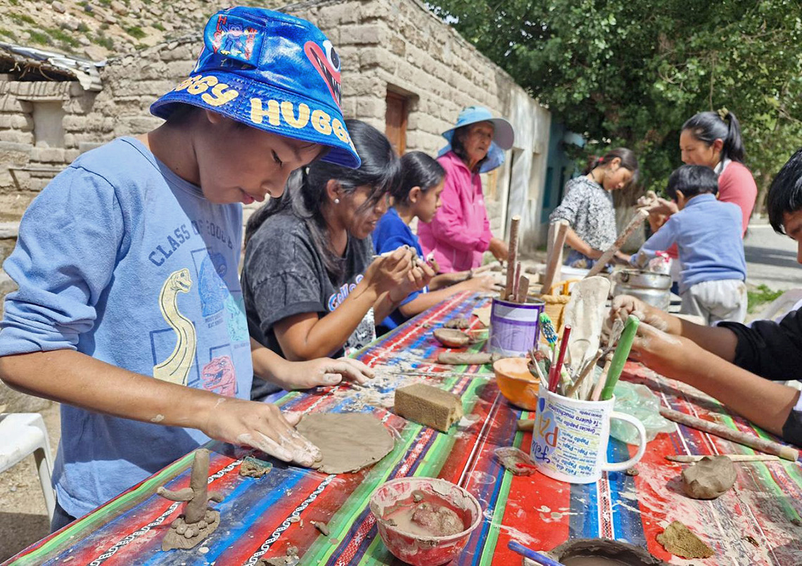 Entre las actividades se realizaron los talleres “Sonidos de la tierra: el canto con caja”, en Campo Quijano y Cerrillos; “Voces del territorio”, en Tolar Grande, donde estudiantes produjeron podcasts a partir de relatos locales; y “Pequeñas y pequeños ceramistas: viaje al mundo ancestral”, en la Quebrada del Toro, con la participación de niñas, niños y familias de Santa Rosa de Tastil y Las Cuevas. En Cachi también se desarrolló el taller “El Tesoro Escondido de Cachi: Aventura y Misterios en el Museo”, que incluyó recorridos educativos, actividades de exploración cultural y la elaboración colectiva de un mural que recuperó elementos de la identidad local.