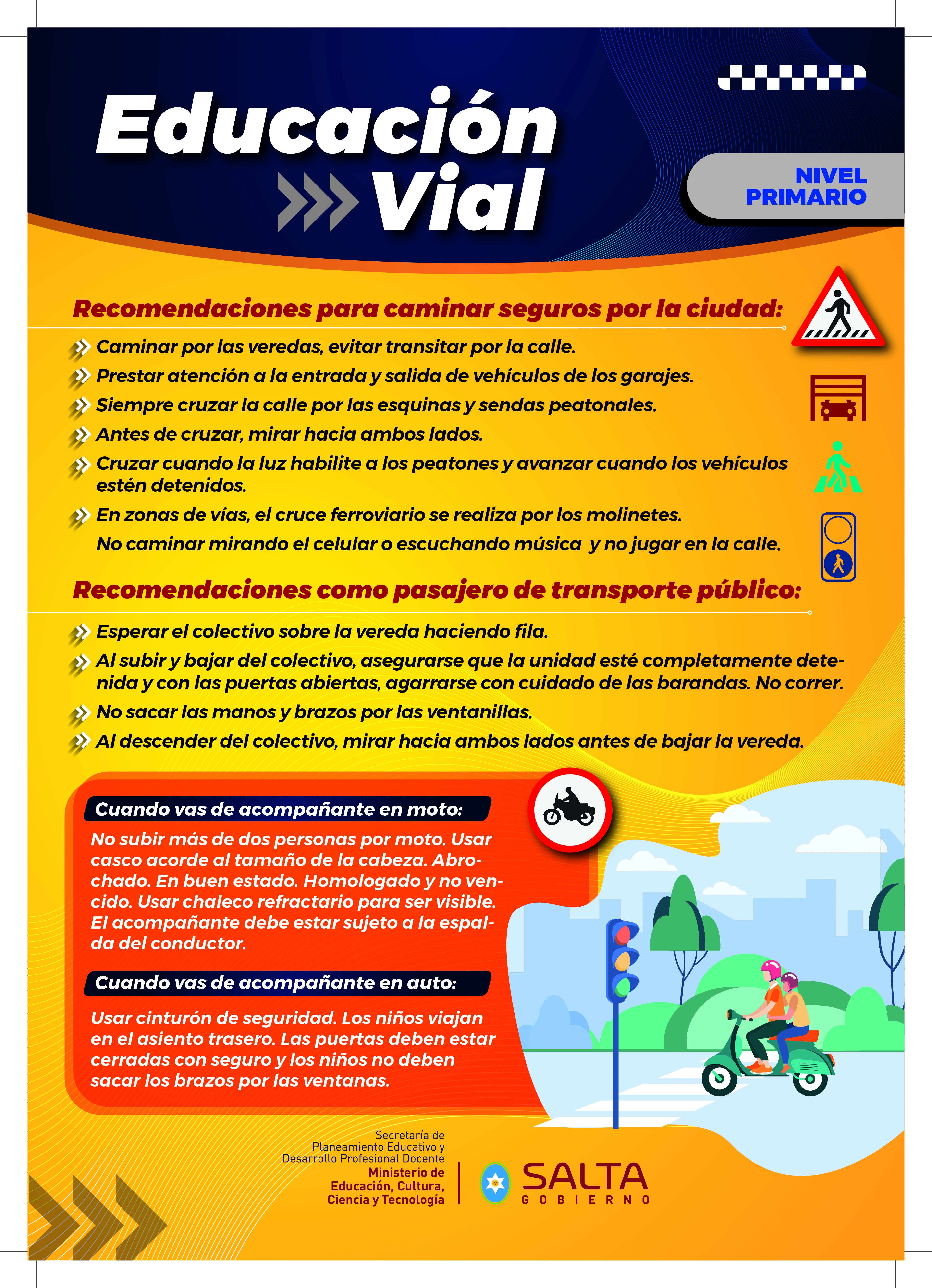 Las gráficas permiten analizar situaciones cotidianas que promueven la educación y el cuidado como peatones, usuarios de transporte público y acompañantes de moto y autos, con el objetivo de circular de manera segura y reconocer los factores de riesgo de siniestro en la vía pública.