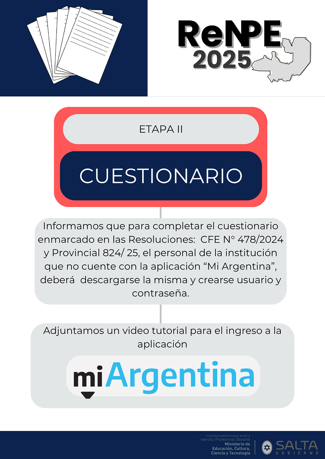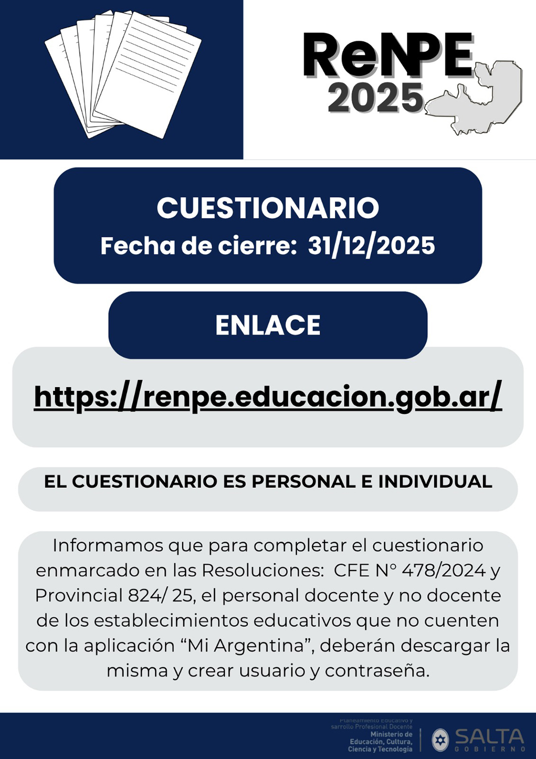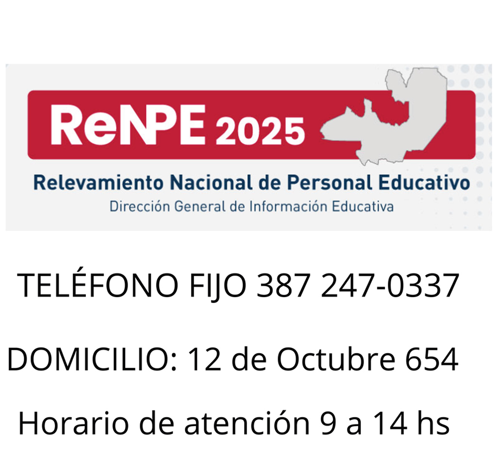 Este espacio ha sido creado por la Dirección General de Información Educativa del Ministerio de Educación, Cultura, Ciencia y Tecnología de Salta para difundir y socializar la implementación del ReNPE 2025 en nuestra provincia y nivel nacional.